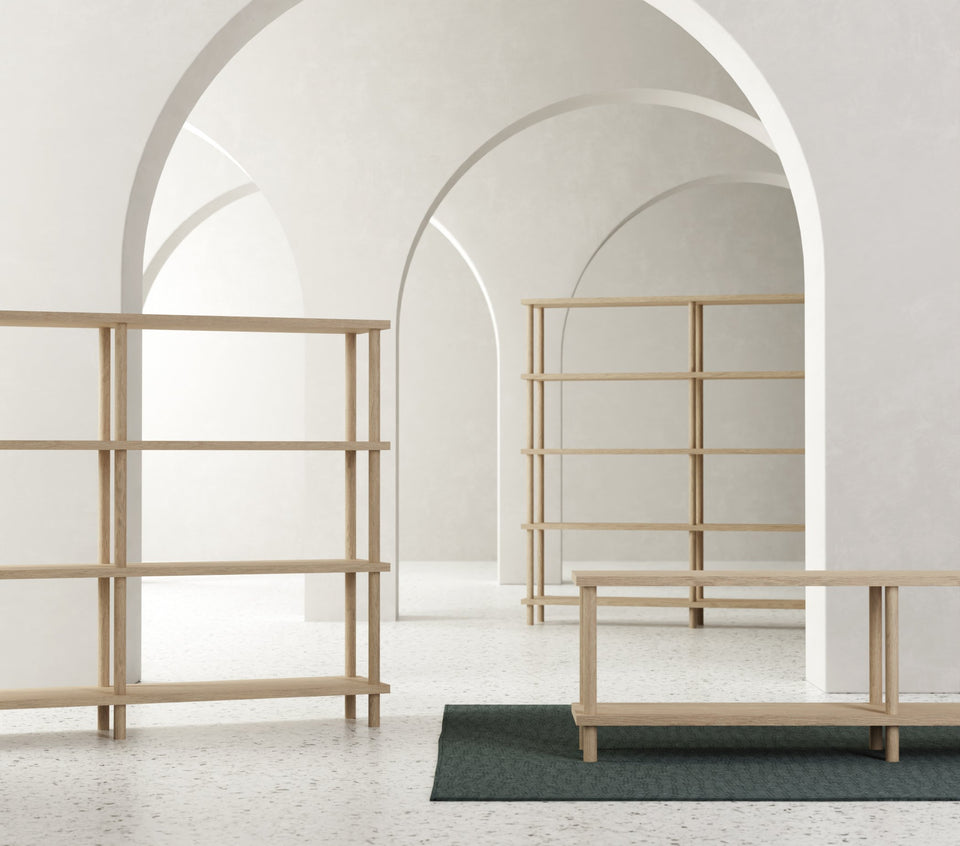 Merida is a free standing shelf system that doesn't require a single screw. With components that flow seamlessly into each other and available in a wide selection of colours, widths and heights.